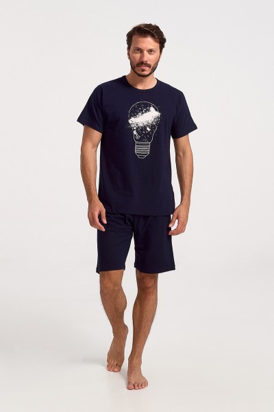 Καλοκαιρινή ανδρική πιτζάμα MISTER σε όμορφη απόχρωσηΒαμβακερή Κοντομάνικη μπλούζα λεπτής ύφανσης σε άνετη γραμμή