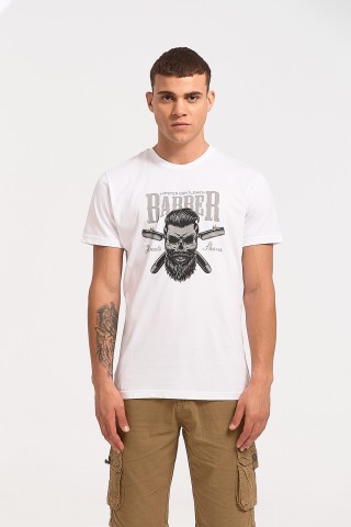 Ανδρικό T-Shirt Cotton4all BARBER 23-711 Λευκό
