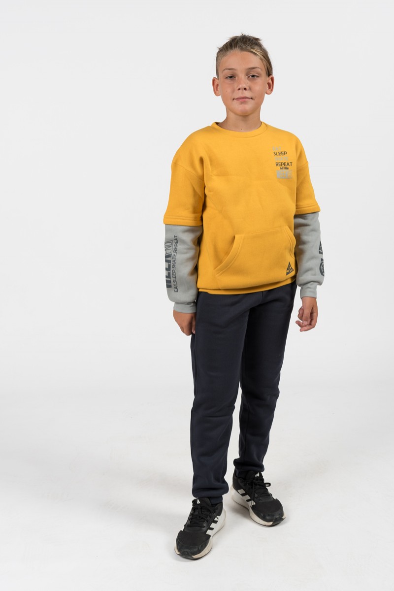 Χειμερινές φόρμες εφηβικές TRAX για αγόρια 6-16 ετώνΜακρυμάνικη μπλούζα φούτερ με εσωτερικό χνούδι και λάστιχο στο μανίκι