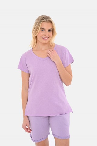 Γυναικεία κοντομάνικη μπλούζα BODY MOVE σε χρώμα ΛΙΛΑΛεπτή ύφανση τύπου flama σε άνετη και δροσερή γραμμή