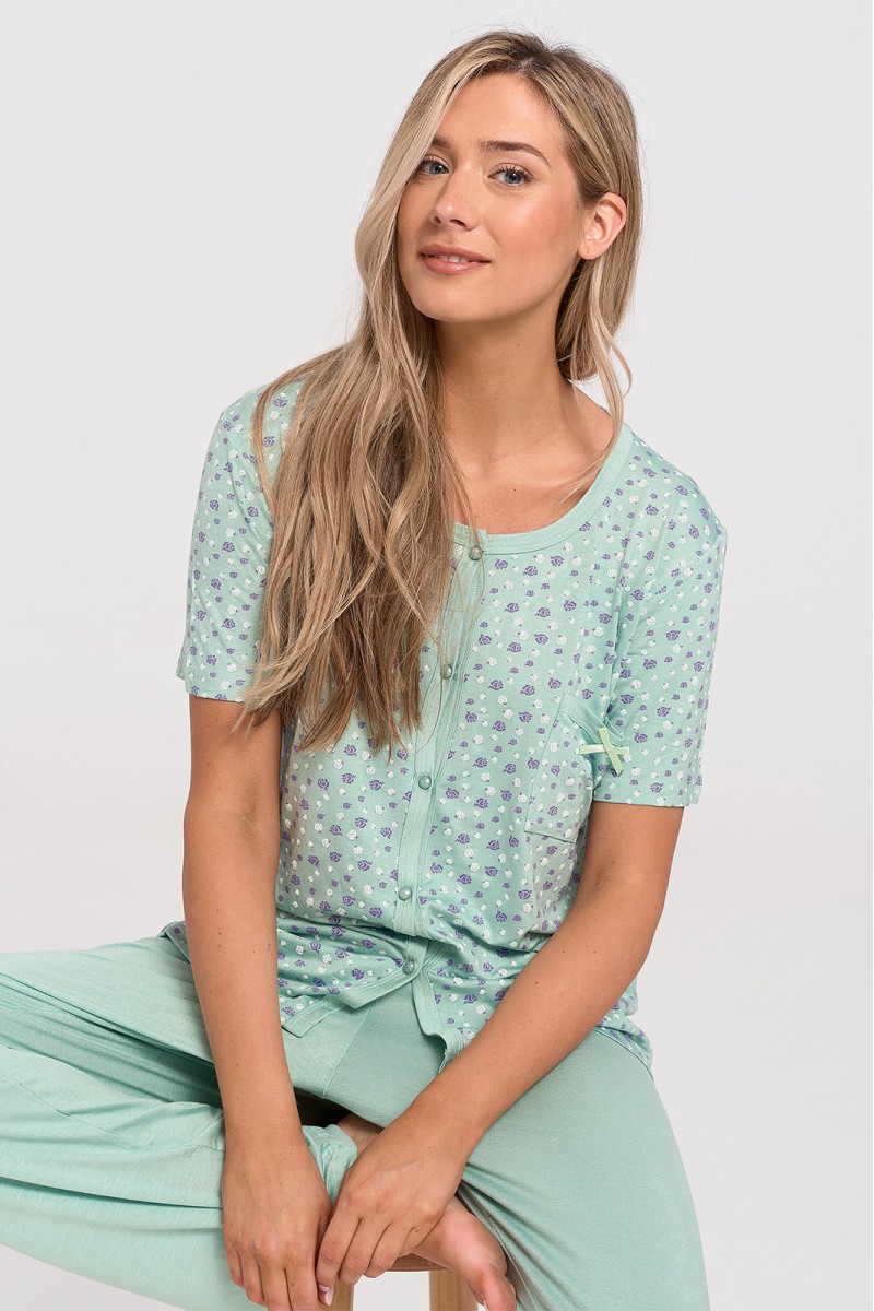 Καλοκαιρινή πιτζάμα KOYOTE με κάπρι παντελόνιΚοντομάνικη μπλούζα με κουμπί μέχρι κάτω σε άνετη και δροσερή ποιότητα