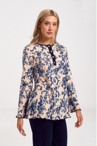 Γυναικεία χειμερινή πυτζάμα απο τη νέα collection MISS RODIΜακρυμάνικη μπλούζα με all-over τύπωμα και 3 κουμπιά στο στήθος.