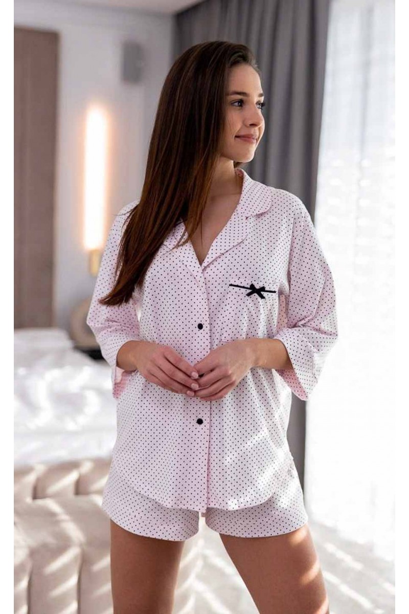 Καλοκαιρινή γυναικεία πιτζάμα SENSIS 2022Βαμβακερή κοντομάνικη μπλούζα λεπτής ύφανσης με όμορφη στάμπα