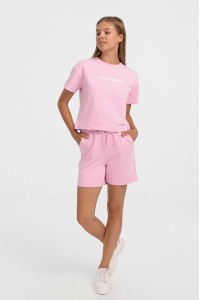 Καλοκαιρινό Sport σετ TRAX σε απαλή λιλά απόχρωσηΑμάνικο CropTop μπλούζα με διακριτική στάμπα και βερμούδα