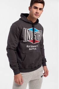 Ανδρική μακρυμάνικη μπλούζα φούτερ με κουκούλα και διακριτκό τύπωμα, ελαφρύ ευχάριστο χνούδι στο εσωτερικόΔιαθέσιμη σε γκρι σκούρο/ανθρακί απο Small έως και 3XL