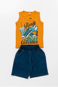 Παιδικό καλοκαιρινό Σετ μακό για αγόρια,μπλούζα με τύπωμα και βερμούδα με μαλακό λάστιχο στη μέση