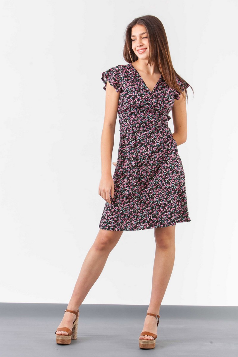 Φόρεμα κοντό σε σταθερο floral voile ύφασμα με δέσιμο, τύπου φάκελος.ΣΥΝΘΕΣΗ: 100% rayon